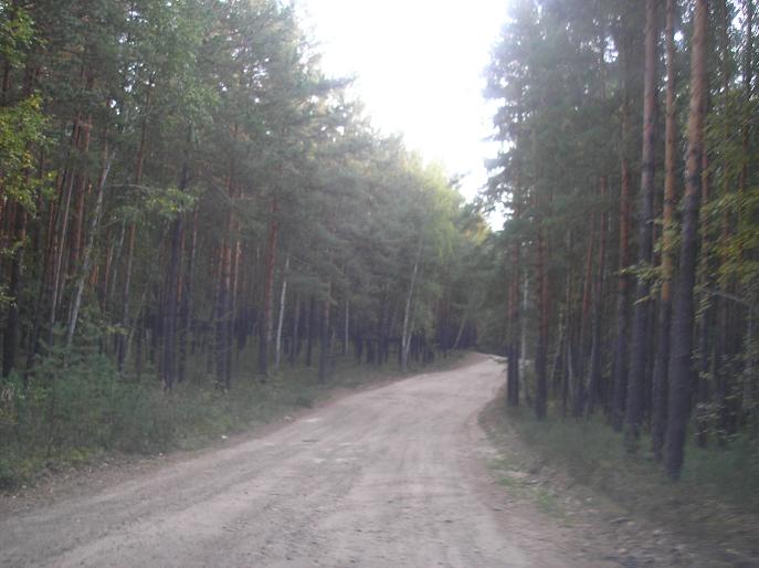 Фото сильно приукрашивает состояние дороги, но в тоже время не передает истинной красоты нетронутого соснового бора.