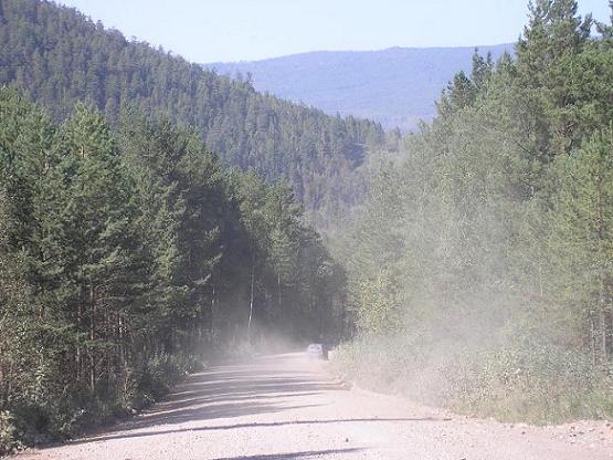 Останавливаемся у заправки перед поворотом на Бердяуш, ждем нашего незадачливого напарника. Далее сворачиваем с М5 на право на Бердяуш, и движемся до него по очень извилистой, но хорошей дороге. Проехав через весь поселок насквозь, попадаем на насыпную дорогу, и сразу же начинается серпантинный спуск. Вопреки рассказам и отчетам насыпная дорога от Бердяуша вполне хорошего качества, очевидно, что ее успели разровнять. Вполне можно ехать со скоростью 80 км/час.