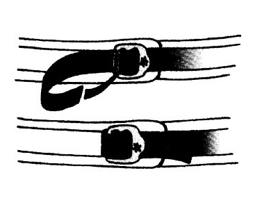 ![]() Беседка с обычной пряжкой, требующей заправки стропы в обратную сторону |
