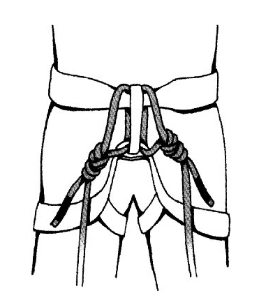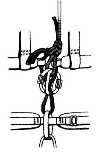 Комбинированное ввязывание в беседку с грудной обвязкой: В этом случае ровное положение гарантированно и без напряжения пресса, оно сохраняется и в бессознательном состоянии.