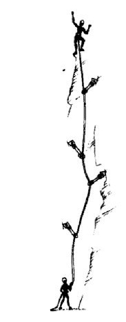 Лазанье в тройке на основной верёвке гораздо неудобней. Сегодня этот способ используется, как правило, гидами во время прохождения маршрутов второй – третьей категории сложности. На сложных маршрутах эта стратегия однозначно устарела.