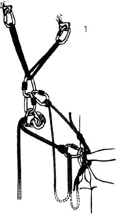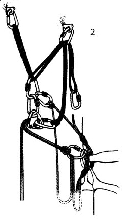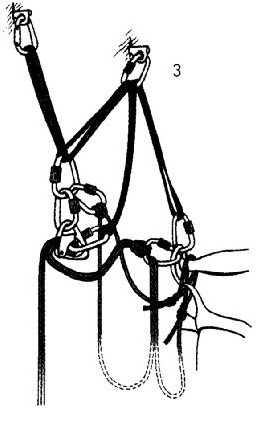 2. в блокирующий карабин реверсо ввязывается петля, которую пропускают через верхний карабин станции...