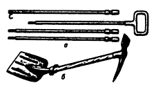 Лавинное снаряжение: а – лавинный зонд; б – лавинная лопата.