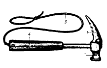 Ледовый молоток: 1 – «клюв», 2 – боек; 3 – темляк, 4 – обрезиненная ручка