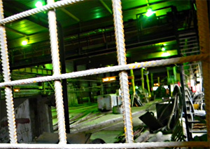 Особый интерес представляет собой огороженный комплекс нескольких зданий, по всей видимости, какой-то брошенной недавно стройки. Объект слабо охраняется (будка есть, но охраны то ли не было, то ли ей лень было инспектировать объект в дождь), проникнуть туда, спустившись с Ямантау, не составило никакого труда. Башнеподобное здание, похоже, являлось вентиляционной башней и шахтой лифта одновременно, вентиляция работала исправно и ветер выносил наружу ни с чем не сравнимый подземный сухой запах. Рядом имелись пристройки. Пристрой, напоминающий бетонированную цитадель имел широкий вход, уводящий куда-то вниз. Лезть туда мы не решились, так-как небезосновательно полагали, что это урановый рудник - боялись радиации. Так мы решили потому, что в другом здании мы обнаружили бассейновые секции, разделенные бетонными перегородками. Вероятнее всего они предназначались для предтранспортировочного хранения урановой руды (ну как показывают в передачах о могильниках отработанного урана - там они хранятся в стержнях в бассейнах). Видимо, вся эта секретность и была связана со строительством этого рудника. Кстати, в трех-четырех километрах от этого места расположено три секретных поселения городского типа под общим названием Межгорье.