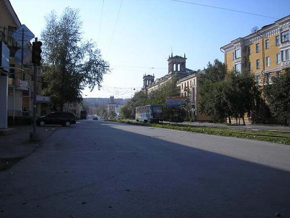 Времени на детальный осмотр города у нас уже не оставалось, поэтому мы ограничились проездом по всему городу. В целом он оставляет приятное впечатление, если бы не знакомый с детства запах выбросов металлургического производства, то его вполне можно спутать, допустим, с Туапсе. Кажется, что вон за той горой плещется море. Лично мне понравилась улица Карла-Маркса, застроенная милыми сердцу сталинскими домами.