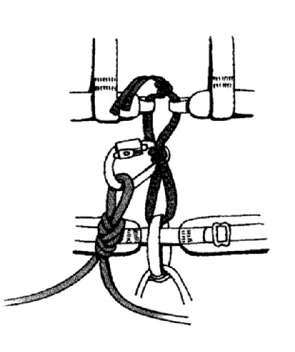 Комбинированное ввязывание в беседку с грудной обвязкой: В этом случае ровное положение гарантированно и без напряжения пресса, оно сохраняется и в бессознательном состоянии.
