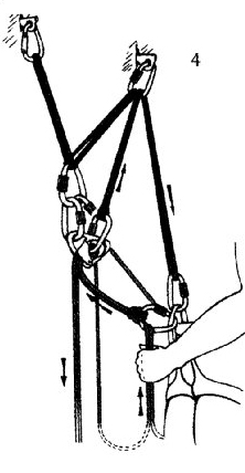 2. в блокирующий карабин реверсо ввязывается петля, которую пропускают через верхний карабин станции...