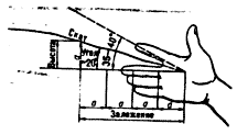 Рис. 3. Определение крутизны ската на глаз при помощи пальцев рук.