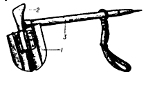 Рис. 2. Лопатка Месснера: 1 – лопатка; 2 – головка ледоруба; 3 – рукоятка ледоруба.