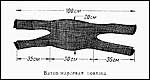 Сетку можно изготовить самому из куска рыболовной сети (бредневой дели с ячеей любой величины) размером 50x75 или 60x80 см. Края сетки обшить узкой хлопчатобумажной тесьмой - кантом. На одной из длинных сторон сетки по концам пришивают тесемки длиной 30-35 см.